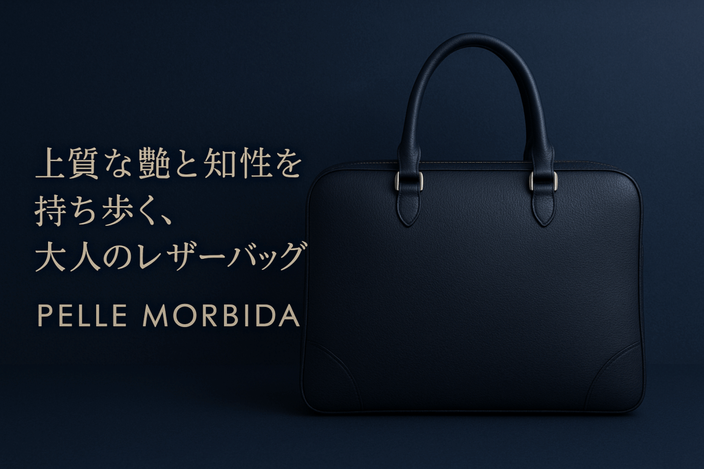 ペッレモルビダは、イタリア語で「柔らかい革」という意味。日本の熟練職人が手がける極上レザーは、手に吸い付くようなしなやかさと光沢を持ち、使うほどに味わいを増します。デザインは極めてシンプルながら、細部まで計算された縫製・金具の質感が高級感を演出。スーツスタイルにも私服にも自然に馴染む、まさに“大人のための通勤バッグ”です。