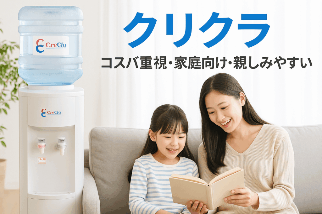 「クリクラ」は業界でも老舗の宅配水ブランド。RO膜でろ過した純水にミネラルを加え、まろやかな味わいに仕上げています。全国に配送網を持ち、サポート体制も充実。オフィスにも家庭にも導入しやすいモデルです。