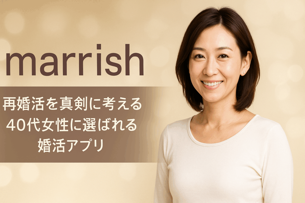 再婚活に特化した機能・利用者層・安全性の高さなど、40代女性にとって理想的な環境がそろっています。迷ったらまずマリッシュから始めるのがベストです。