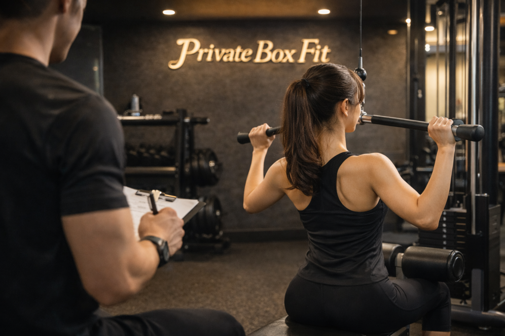 Private Box Fitは、完全個室型のトレーニング空間を提供するジムで、「人の目を一切気にせず運動したい」という女性に支持されています。個室内でのトレーニングのため、周囲を気にせず集中でき、初心者でも恥ずかしさを感じにくい点が大きな魅力です。