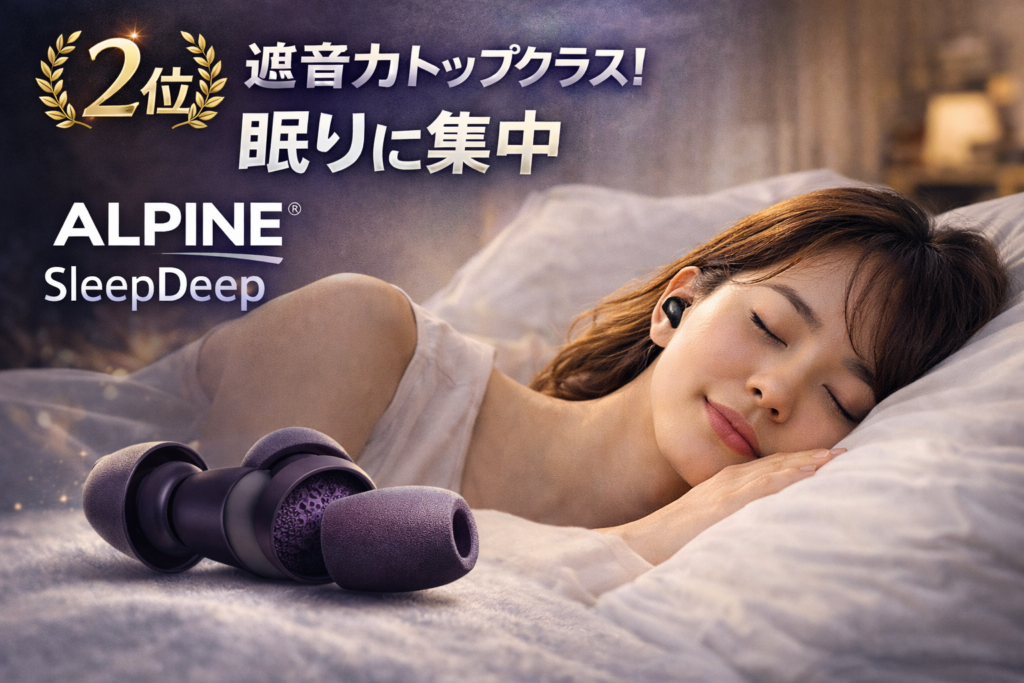 | 🥈2位 | Alpine SleepDeep | 約2,500円 | 柔らか素材/睡眠特化 | 遮音性◎・装着感◎ | 複数パック割引あり | 睡眠用に最適、就寝中も快適 |