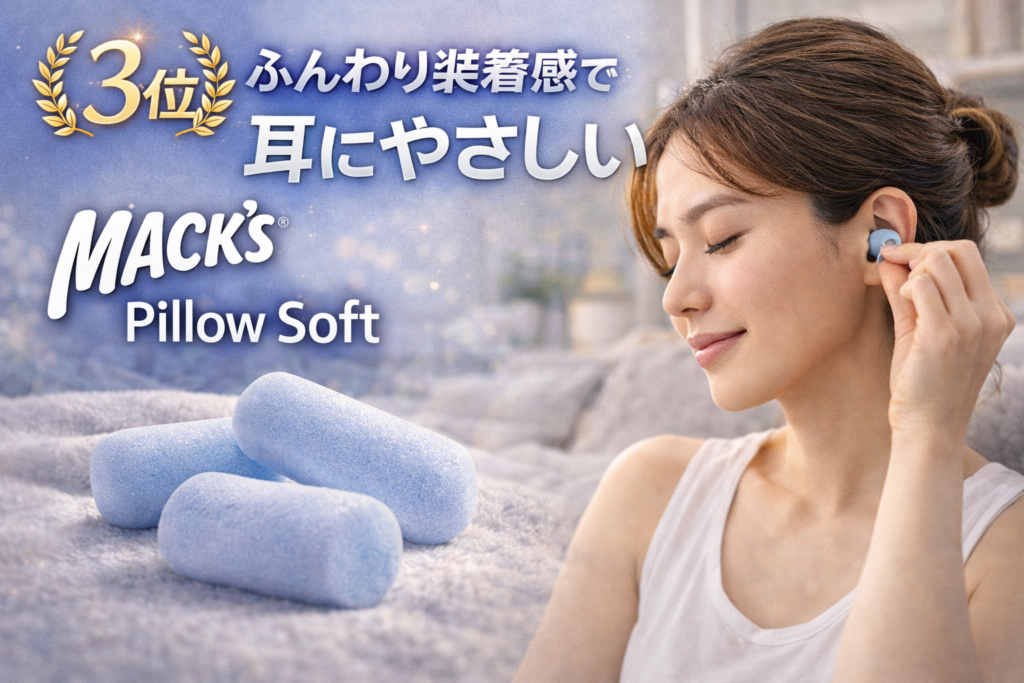 | 🥉3位 | Mack’s Pillow Soft | 約1,500円 | シリコン素材/水洗い可 | 装着感◎・遮音○ | 洗える/公式限定カラーあり | コスパ◎、初心者にも人気 |